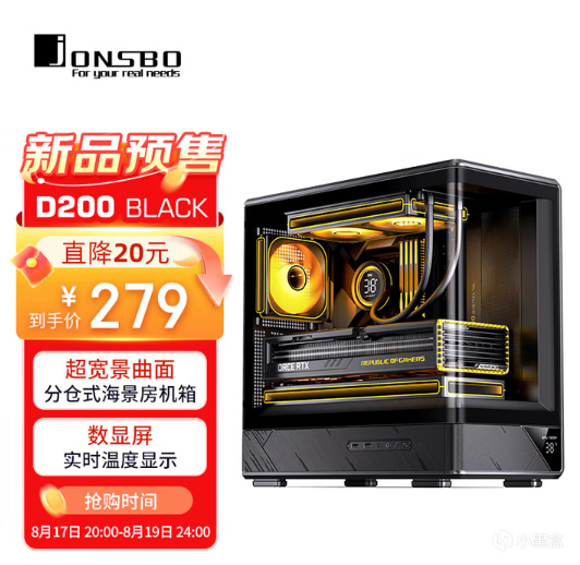 乔思伯今日正式推出D200电脑机箱,延续了D系列标志性的曲面弯玻全景侧透设计语言
