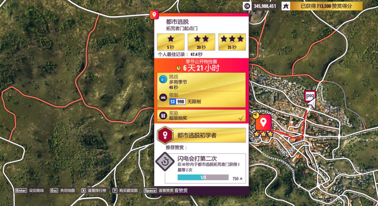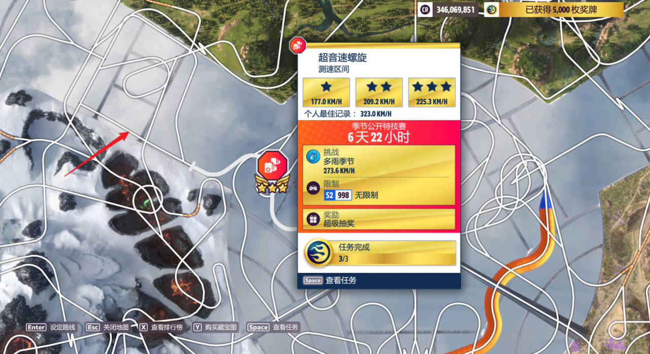 在街頭賽中達成5次驚人極速技術(去地圖上開啓個街頭賽,油門焊死即可)