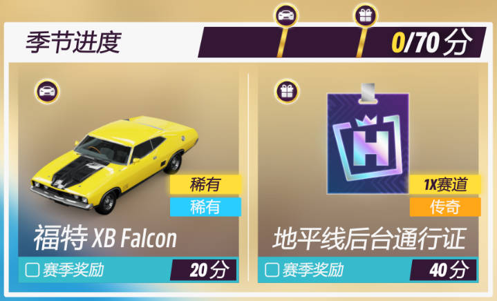 夏季賽20分進度獎勵爲1973款福特 XB FALCON GT和40分進度獎勵爲地平線後臺通行證