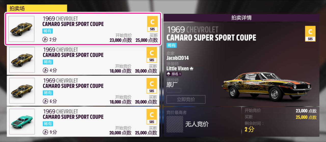 獎勵車輛爲:1969款CHEVROLET CAMARO SUPER SPORT COUPE