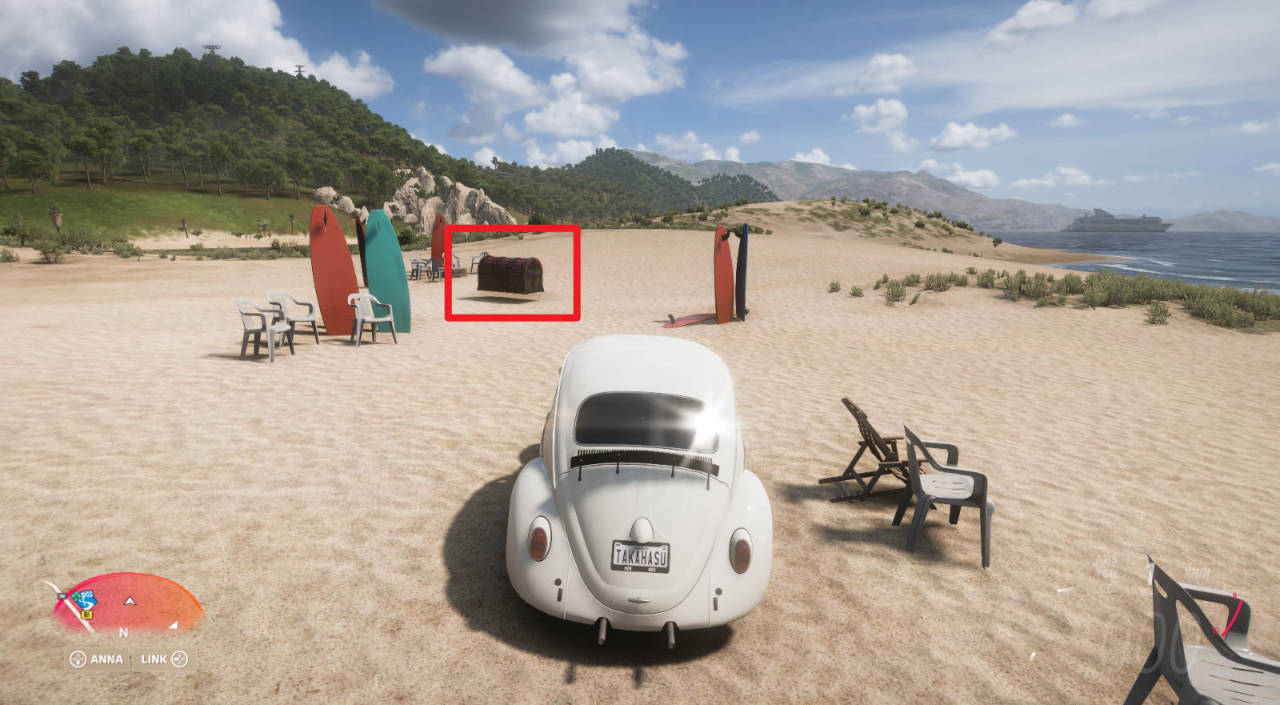 駕駛1963款BEETLE VOLKSWAGEN在高速上達成3次小露身手技術(高速上擦碰車輛即可)即可觸發寶箱大概位置,位置如圖,完成獎勵爲300馬拉松點數