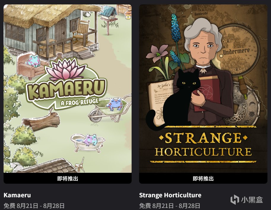下一周赠送的免费游戏为《奇异园艺》和《世蛙桃源》,领取时间8月21日~8月28日