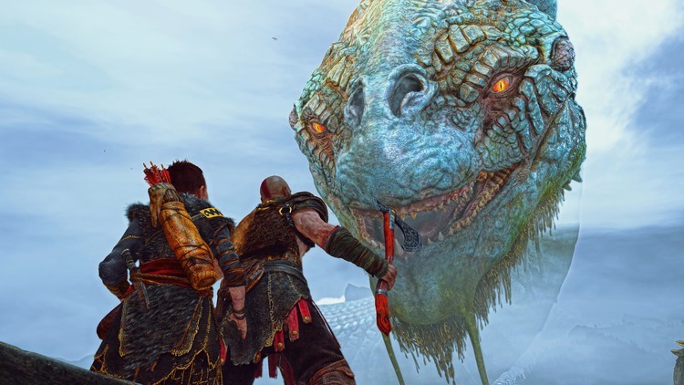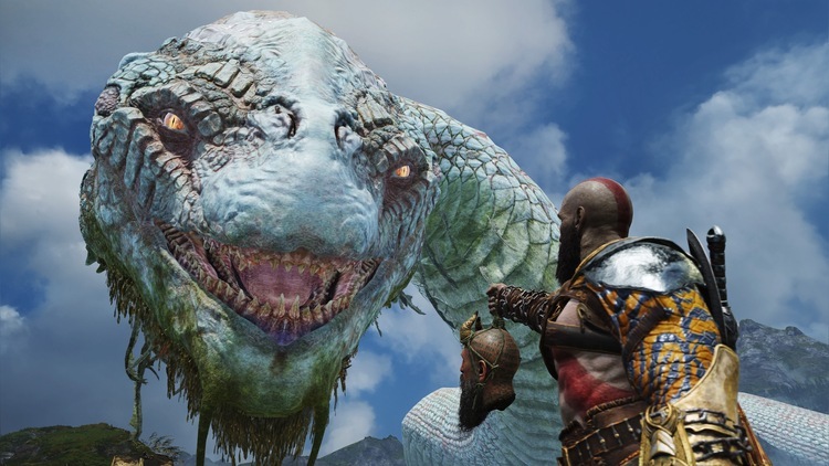 ps4平臺上的戰神4,奎爺從希臘神話打到了北歐神話,並且與兒子並肩作戰。遊戲的視角也由以前的俯視遠景變成了越肩視點,更加迫力感十足了。當我首次見到巨蛇耶夢加得跟父子倆對話時,被這畫面驚着了。