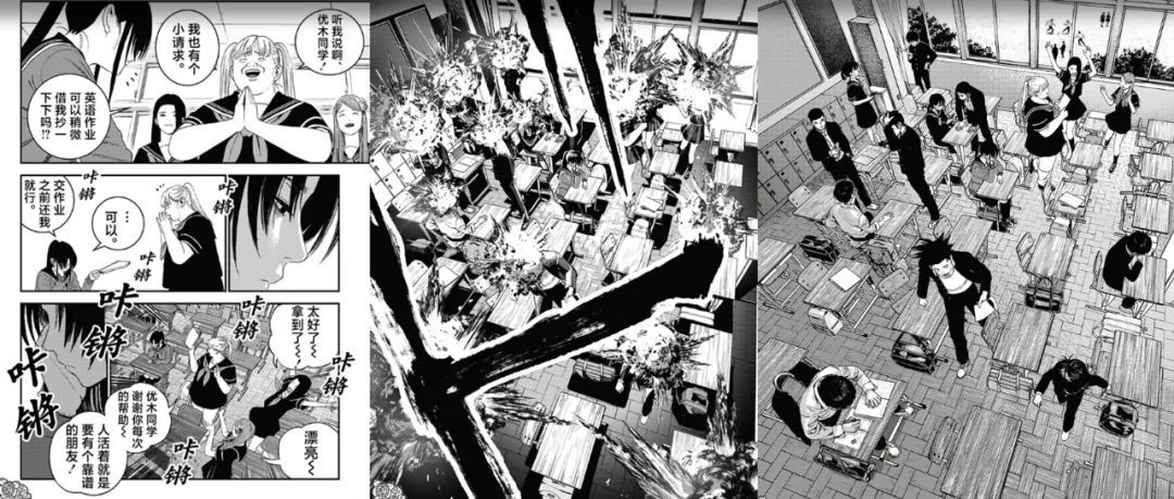 同样,甚至更精妙的剧情和分镜设计,出现在漫画第六话。经历了五话以黑堂羊谷为主视角的故事后,第六话首次将叙事主题转移到了少女角色优木身上。