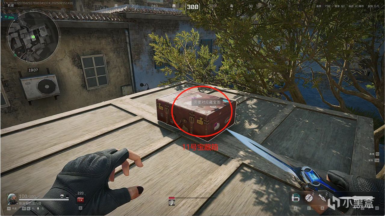 該寶藏箱在藍調山城房子的二樓鐵皮箱上,具體在東城民宅卡房那棟樓。