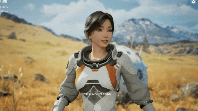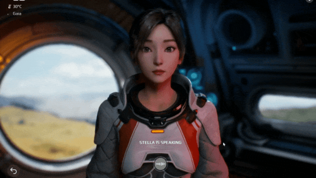 我先是試着詢問着Stella所處環境的情況,建議她仔細觀察艙內各處細節。而Stella不僅通過語音給予了即時反饋,其人物建模也竟然真的從屏幕中央暫離,具備真實的物理動作系統。