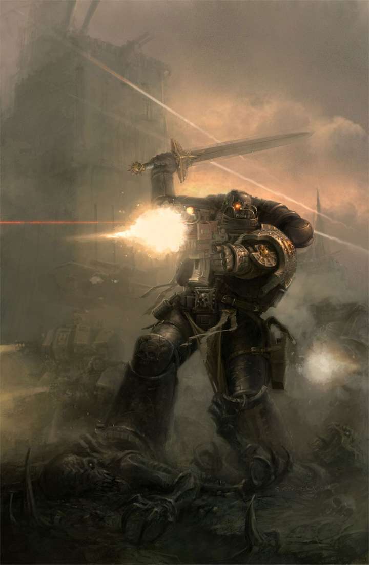 无论来自哪个战团,送别仪式总是庄严肃穆。众人心知肚明,此去一别很可能永无再见之日—这位兄弟将作为未来的殉道者投身对抗永恒对抗异形的最前线。为昭示其使命,新成员的动力装甲将被涂装为漆黑。