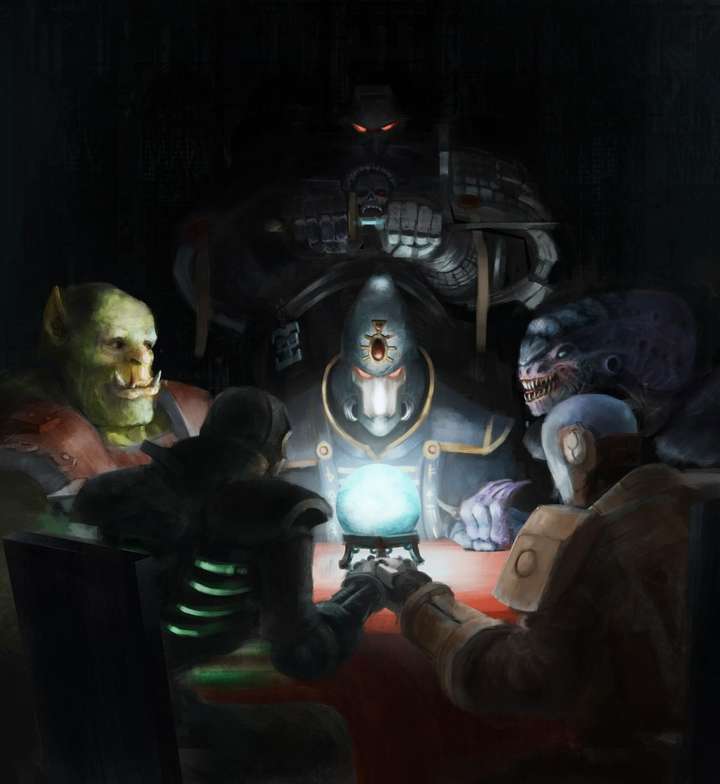 与会的审判官们向战团长们揭示了他们的预言,描绘了贪婪异形对银河系的威胁。每一位战团长皆是历经千场战斗的老兵,在聆听了审判官们的陈述后,退席商议。