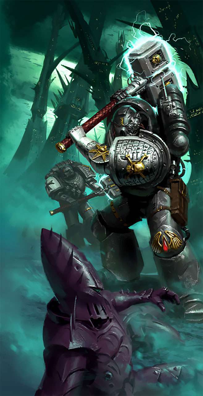死亡守望之锤(未知日期.M32)——灰骑士的预言者们侦测到恩达斯克次星区即将出现亚空间裂隙。当地兽人军阀间的血腥厮杀产生的血河,几乎要撕裂现实直通恐虐的血腥领域。无法及时赶到的灰骑士向死亡守望发出星语通讯。十二支杀戮小队仅用雷霆锤、电击锤(这玩意和电棍似的,打身上不流血)和动力拳套不留一滴血地击杀了一名兽人军阀及其随从。这种以钝击为主要打击手段的战术造成小队了折损过半,但有效减少了流血量,成功阻止了亚空间裂隙的形成。幸存的兽人军阀随后率领绿皮军队离开恩达斯克次星区。一周后观测到他们驶入恐惧之眼,事件就此了结。