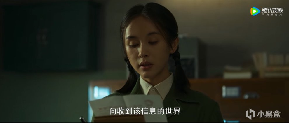 接下來汪淼來到齊家屯與葉文潔見面,一段流暢的轉場,帶大家穿梭回憶過去的紅岸往事,當老年葉文潔走向那個決定人類命運的接收器前時,青年葉文潔收到了來自宇宙AAAAA的可譯解信息——不要回答!不要回答!!不要回答!!!