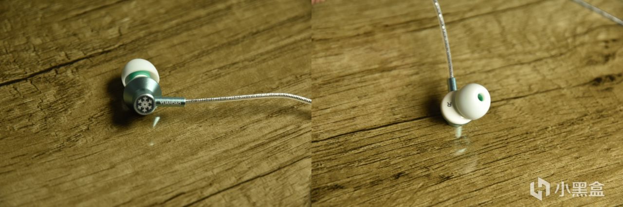 再来看下耳机的外观,非常小巧可爱,后方的小雪花对应了耳机的名称。耳机与线材一体相连,毕竟价格摆在那,这价格想要可更换线材的耳机实在有点难。