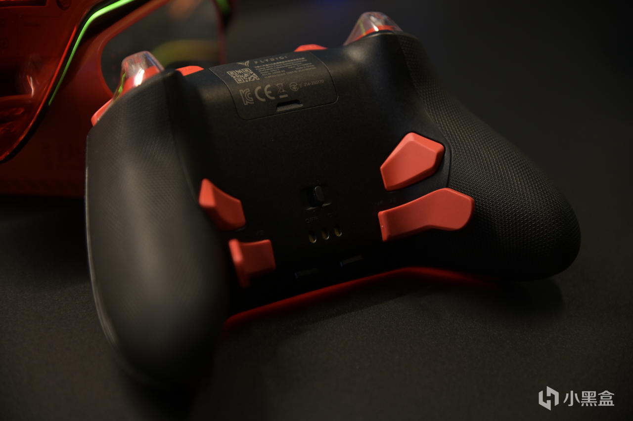 动作键换成了深灰色,十字键默认的是和eva一样的黑色版。四个肩键和扳机键也替换成了红色。背部整体也做成了黑色,两个背键也和肩键一样用的是红色。
