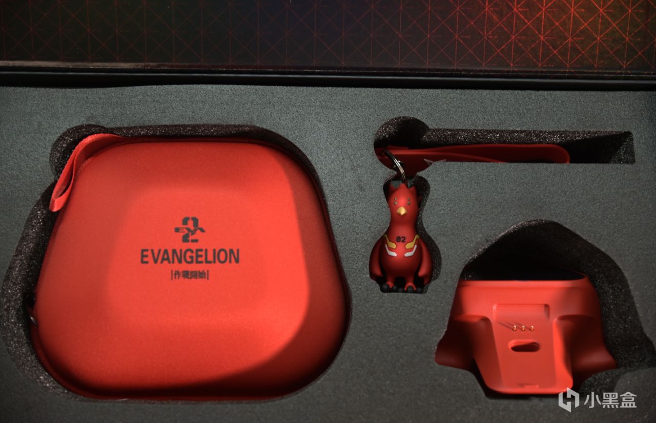 除了这些,eva套装里还有定制的手柄包、明日香卡片、肩键的两个小帽子、飞智吉祥物的钥匙扣。