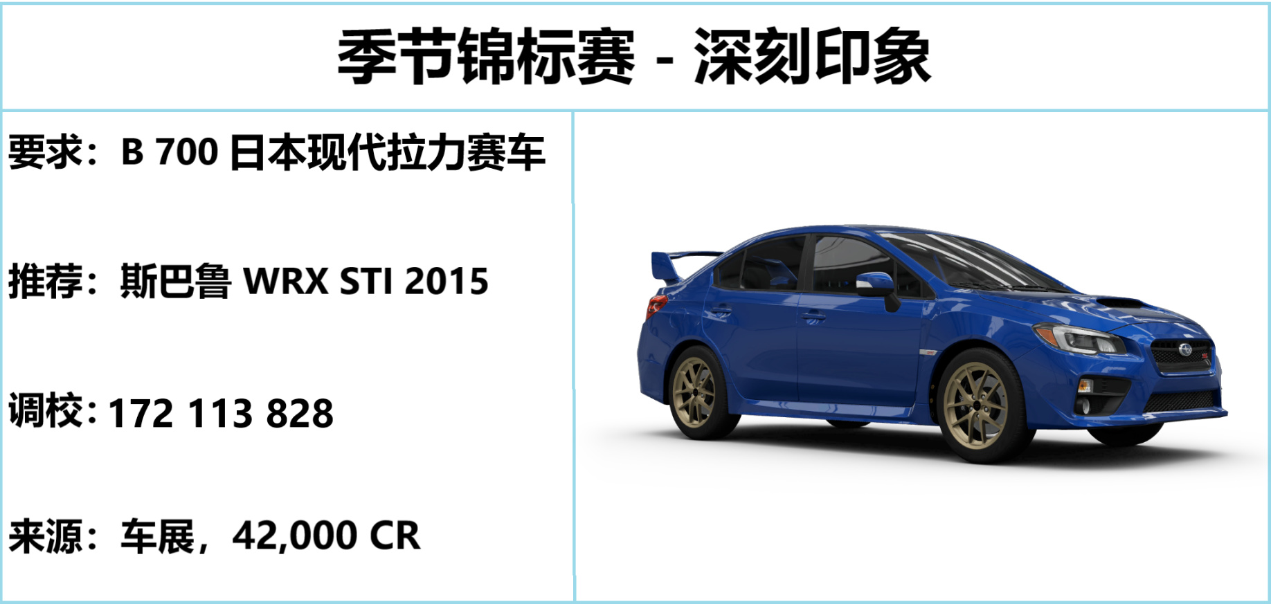 早期的一版 斯巴鲁 拉力调校,多人竞速强度低,但打 AI 足矣