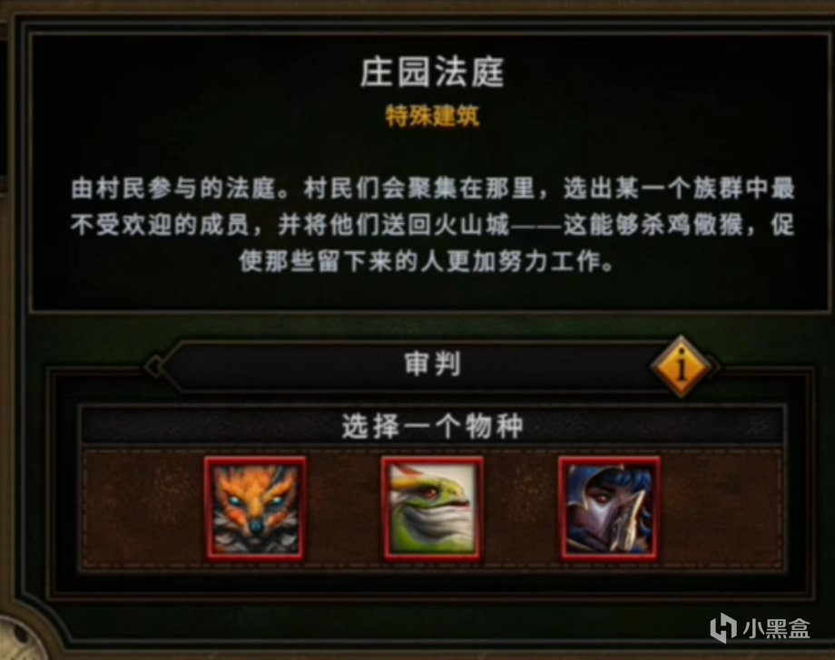 比较有意思的是特殊建筑庄园法庭,可以自由放逐也就是弃用某个种族的农民,感觉就是配合被动“奉献”会非常有用。