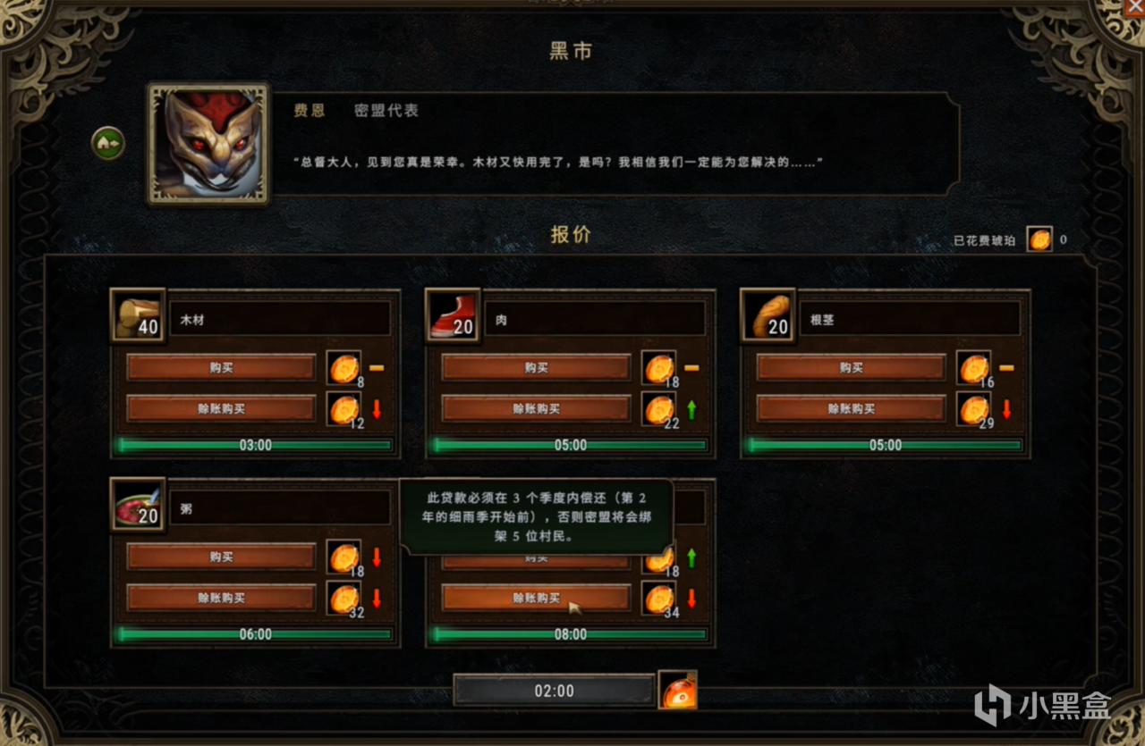 不过这个地图有个有意思的建筑黑市,能够购买或者赊账购买各种物品,如果赊账还不上,黑市将在指定日子拉走村民。