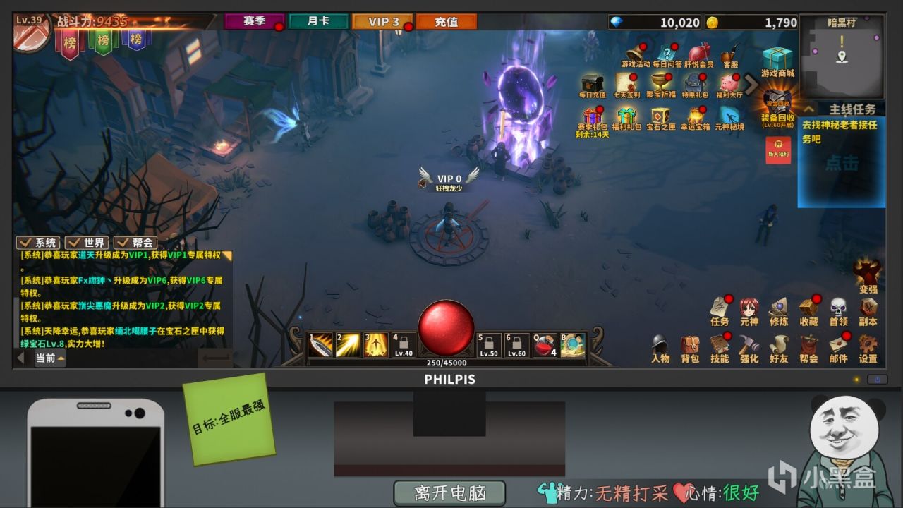 欸,說到單機版“傳奇”,這就讓筆者想到了去年發售的《中國式網遊》。只不過,一個是無腦氪金(當然,是遊戲裏的虛擬貨幣)變強,一個是無腦掛機變強,但期中的爽感倒是有一些共通點!