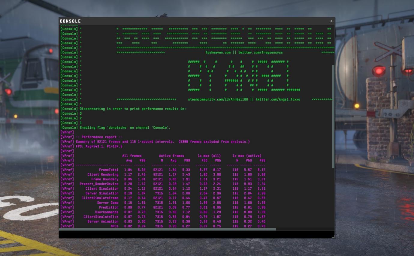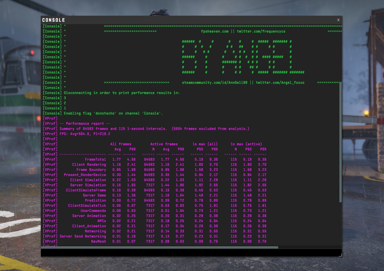 CS2游戏测试,1080P窗口模式下平均帧率 564.6,1%LOW帧是219.2,结果同预期的一样,比起一键性能模式,略有改善。