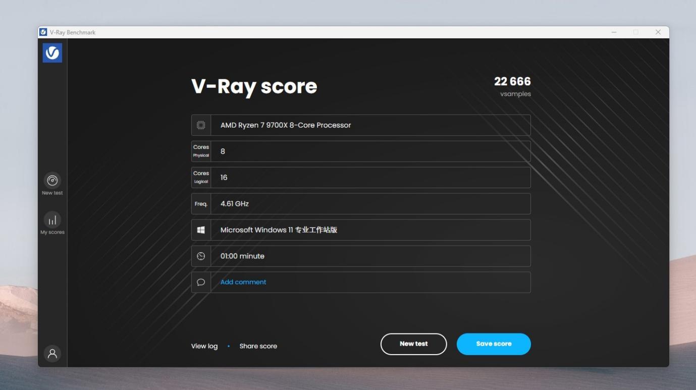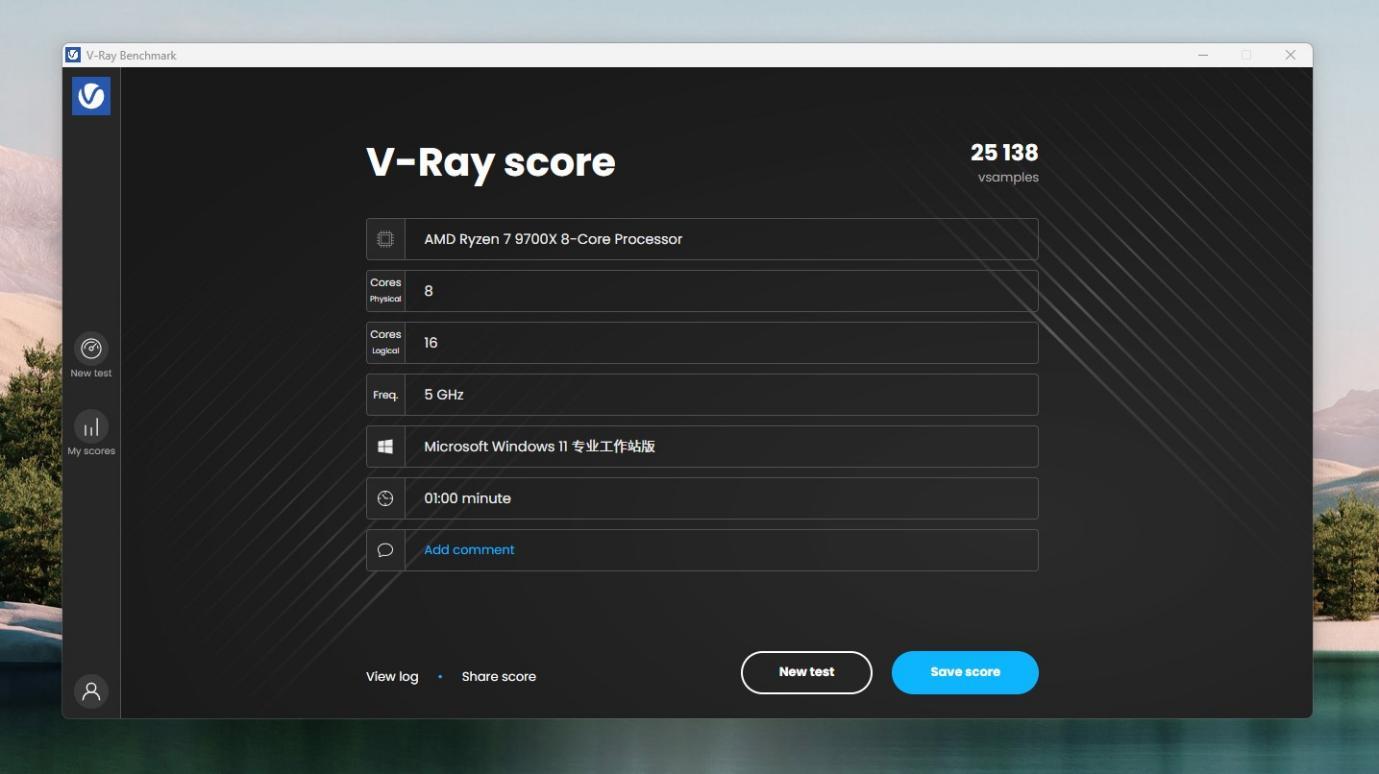 V-RAY测试,跑分25138,提升前得分22666,提升了10.9%。