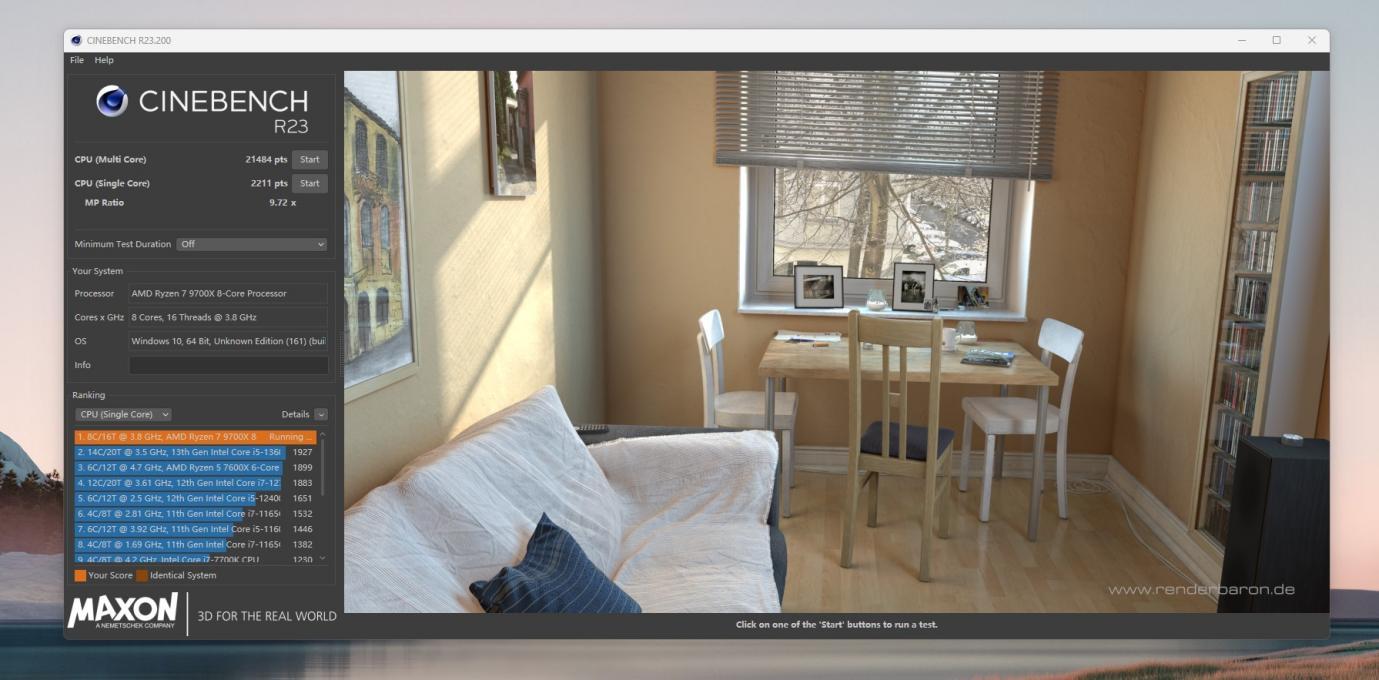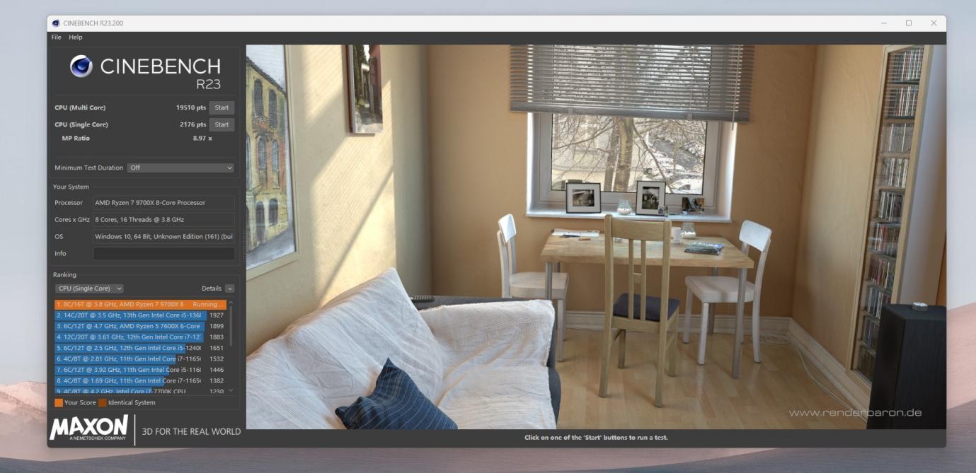 CINBENCH R23测试,多核19510,单核 2176。