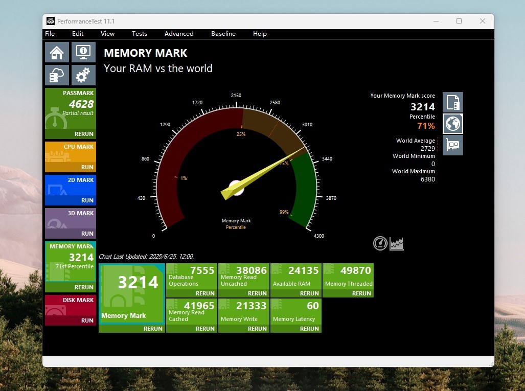 Performance Test 内存测试,3214分排名71%。