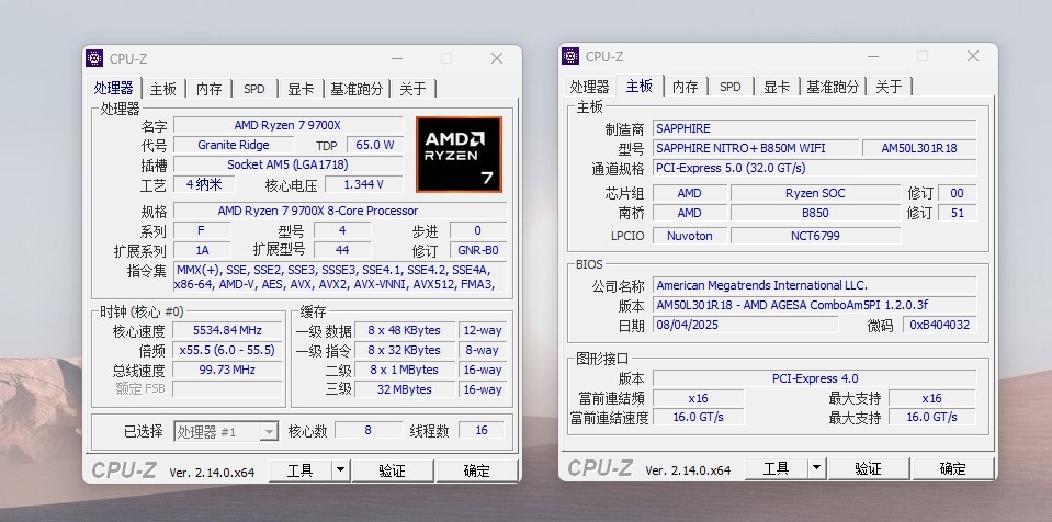 主板是蓝宝石的NITRO+ B850M WIFI氮动主板,这款主板很精致,一体式IO、大型VRM散热装甲以及M.2散热装甲上面布满了氮动系列独特的色彩和图案,独特的青色氛围让人眼前一亮。供电方面这款主板采用了12+2+1相智能供电,最高可以支持AMD R9 9950X。VRM散热片采用了褶皱式设计,而且褶皱密度较大,包括散热片表面也是沟槽式的,散热效果良好。