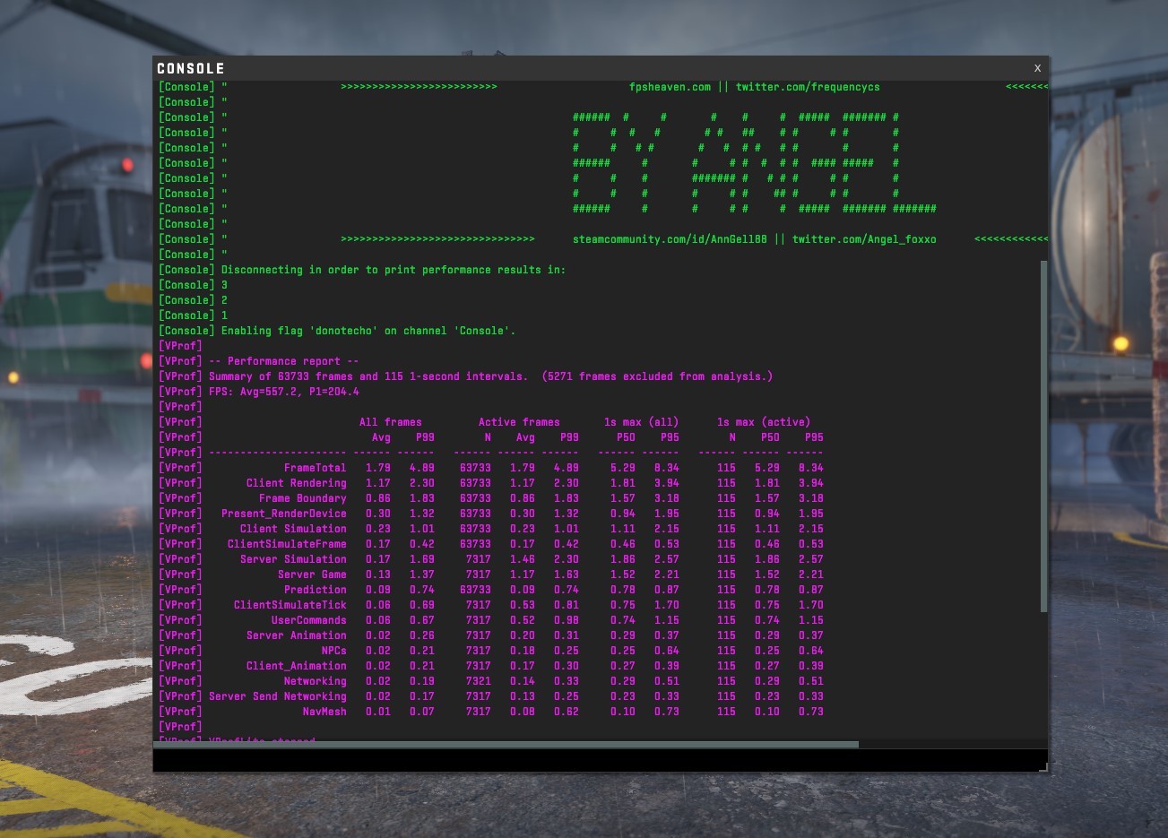 CS2游戏测试,1080P窗口模式下平均帧率 557.2,1% LOW帧是204.4,之前是平均543.1帧,1%LOW帧是197.5。帧数提升了不少。