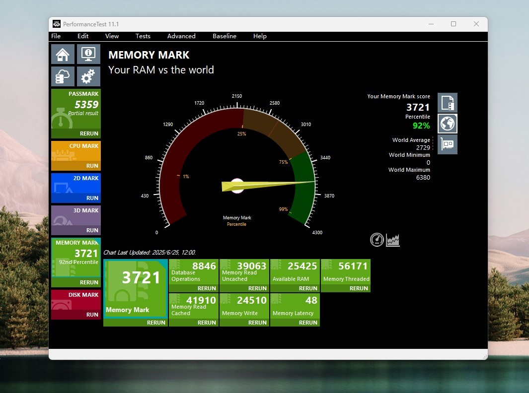 Performance Test 内存测试,3721分排名92%,之前3214分排名71%。分数提升了15.77%。