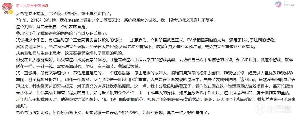 作爲一個武俠遊戲愛好者,我見過太多開局即巔峯的作品,也見證過不少高開低走的遺憾,但沒有一款遊戲像《太吾繪卷》這樣,讓我從 2018 年的驚豔,到 2022 年的揪心,再到 2025 年的熱血沸騰!當得知製作團隊終於將完整版定檔於 2026 年春節的時候,我瞬間淚目!這條跨越七年的江湖路,藏着太多玩家與開發者的羈絆。