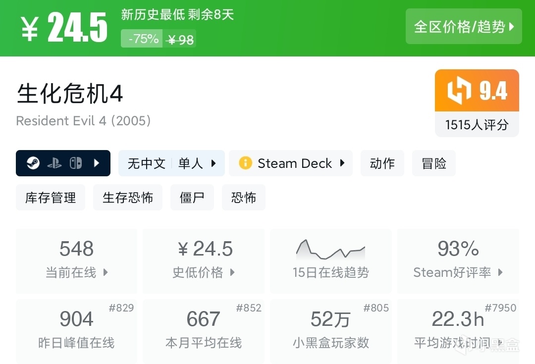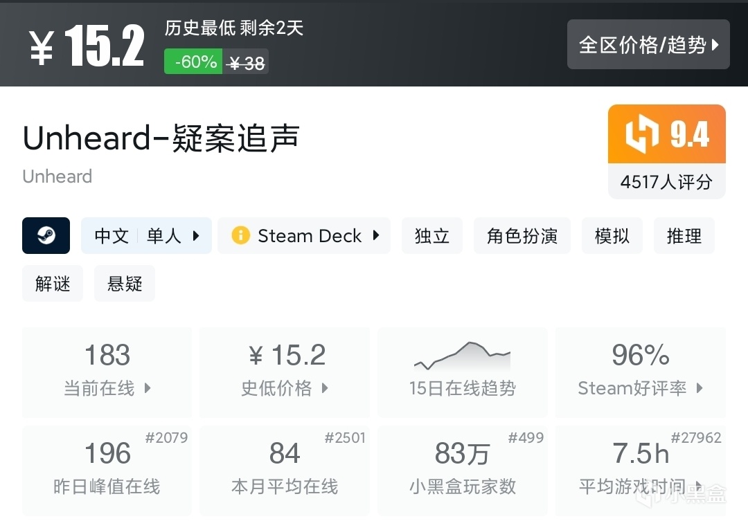 Steam非史低,小黑盒史低。如果第一次玩,可以直接買第二部。