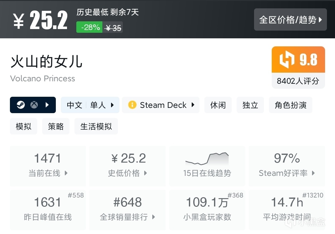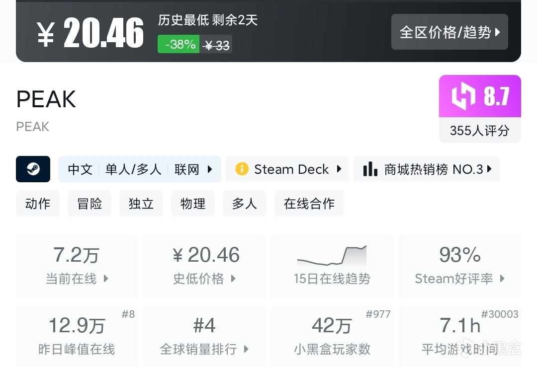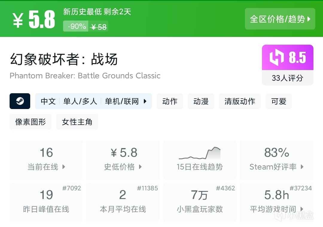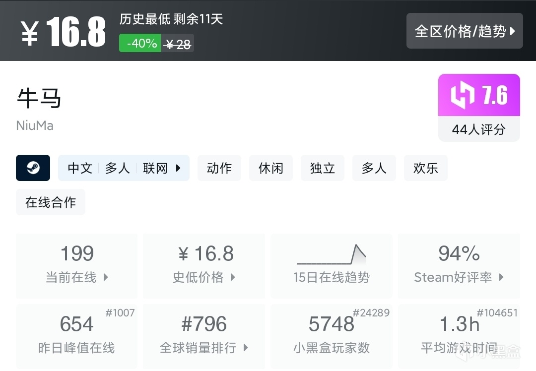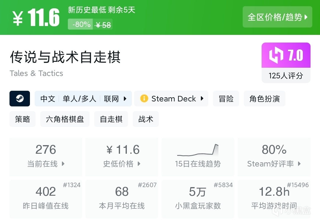 Steam非史低,小黑盒超史低。小時候4399玩過,該遊戲是正版,包含無敵版,大結局也出了,補票好時機。