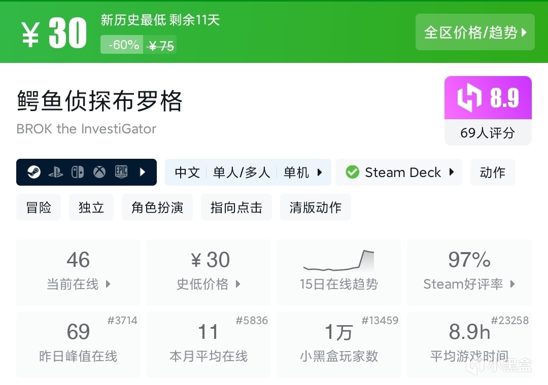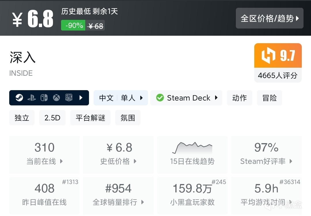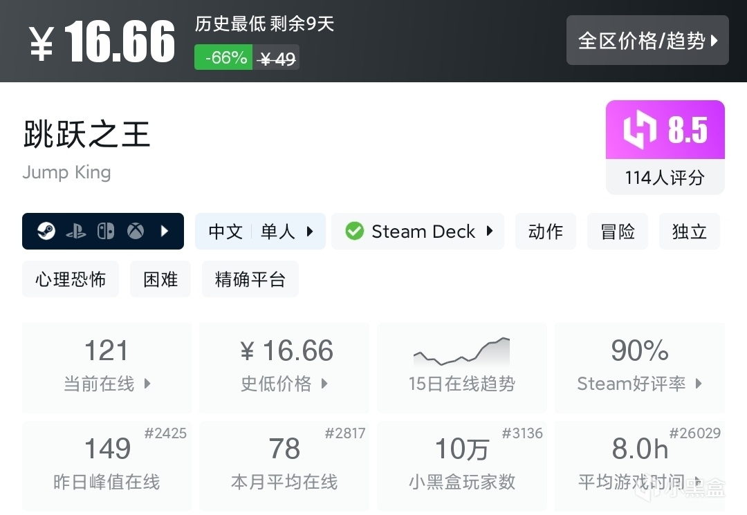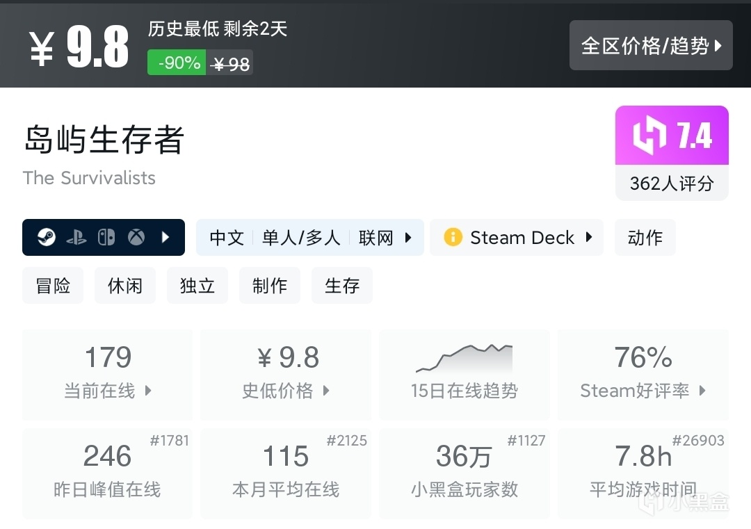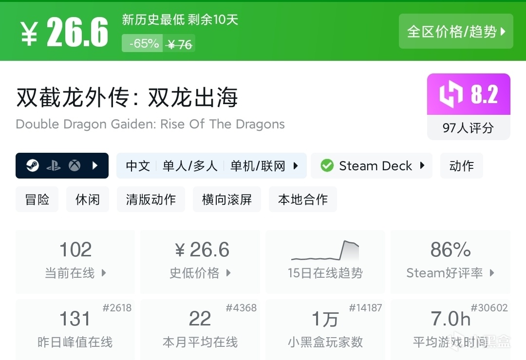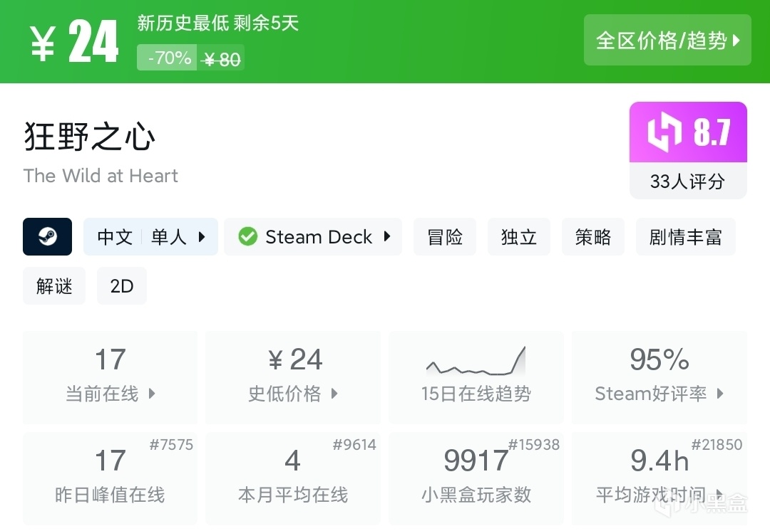 Steam非史低,小黑盒超史低。小時候4399玩過,該遊戲是正版,包含無敵版,大結局也出了,補票好時機。