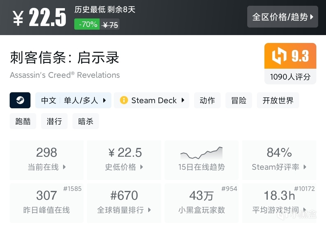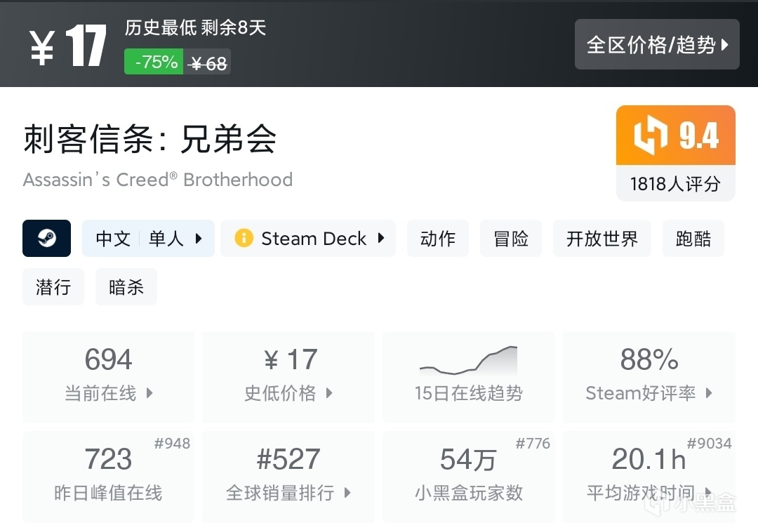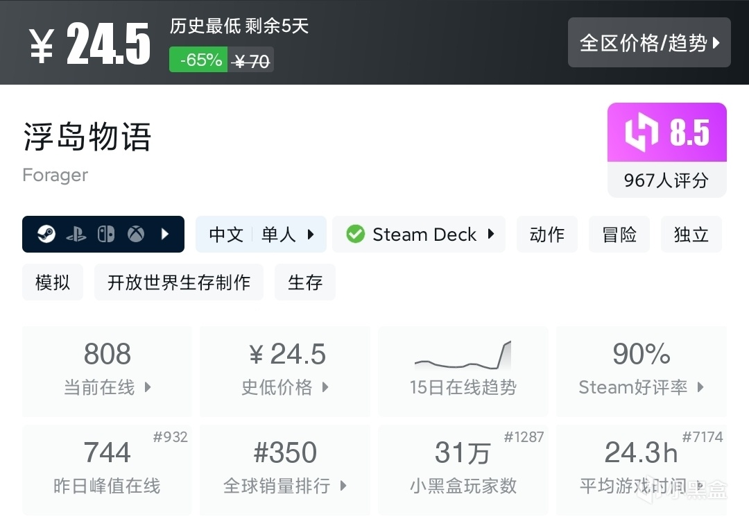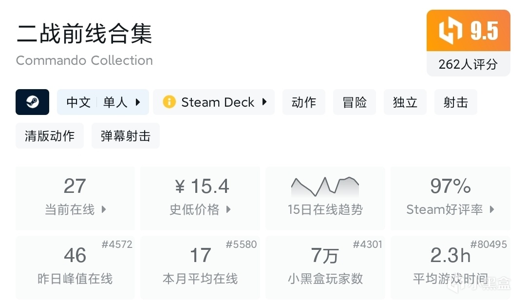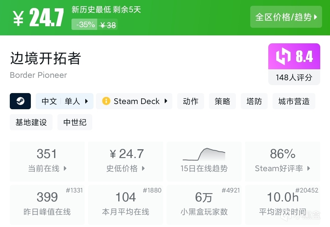 Steam非史低,小黑盒超史低。小時候4399玩過,該遊戲是正版,包含無敵版,大結局也出了,補票好時機。