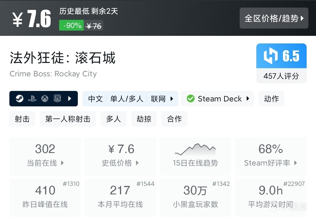 評分低更多是當時賣76被罵的。質量對得起7.6的價格,算是GTA在線和收穫日的代餐