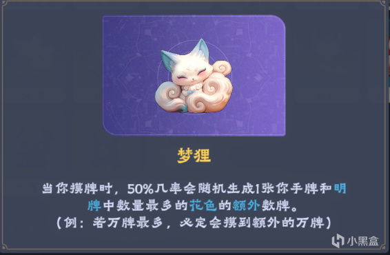 夢狸的效果是每次摸牌時觸發,所以如果我們把每回合摸牌數壓到1,那麼夢狸就相當於讓我們的總摸牌數乘上了1.5,而且是精準檢索的摸牌,生成的牌同時還會繼承牌山中該種牌的所有屬性