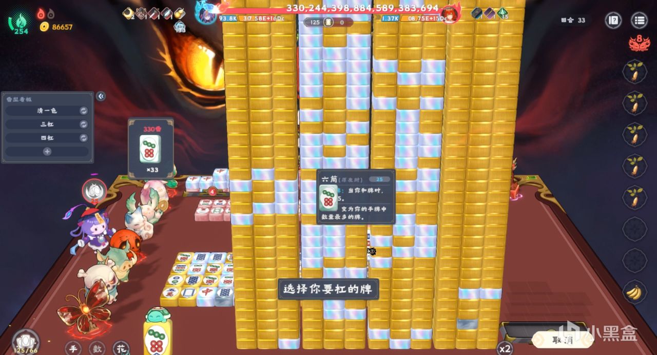 這把我選的角色是“砰砰”,被動技能效果是80%概率生成一張隨機筒,可以看做是小夢狸,但是限定了花色只能玩筒,所以我這把就以筒爲核心進行了構築