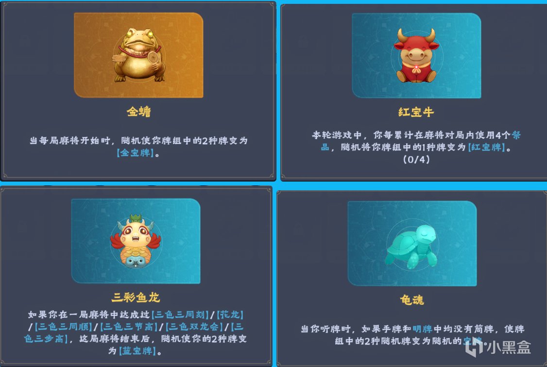 金蟾/紅寶牛/三彩魚龍/龜魂,這四個都是高效疊寶牌的靈俑,前期拿到其中任意一個,後期都可以把牌山所有牌都變成寶牌(首推金蟾)
