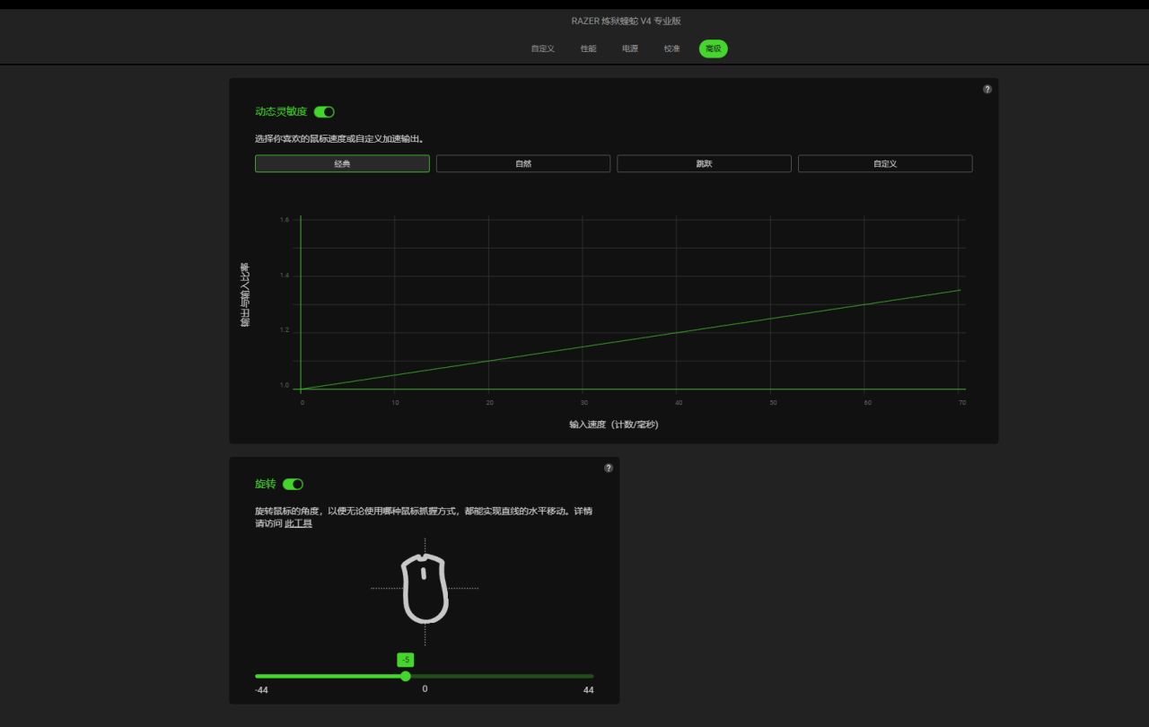 最后一个高级我觉得是最重要的,非常适合那些喜欢抠细节的玩家,就比如你打瓦,你第一段速度可以调节比较慢,适合微调嘛,第二段速度可以调快,适合拉枪定位,也算是一个雷蛇的黑科技吧,目前在国产厂商里面我确实没有看到类似的功能