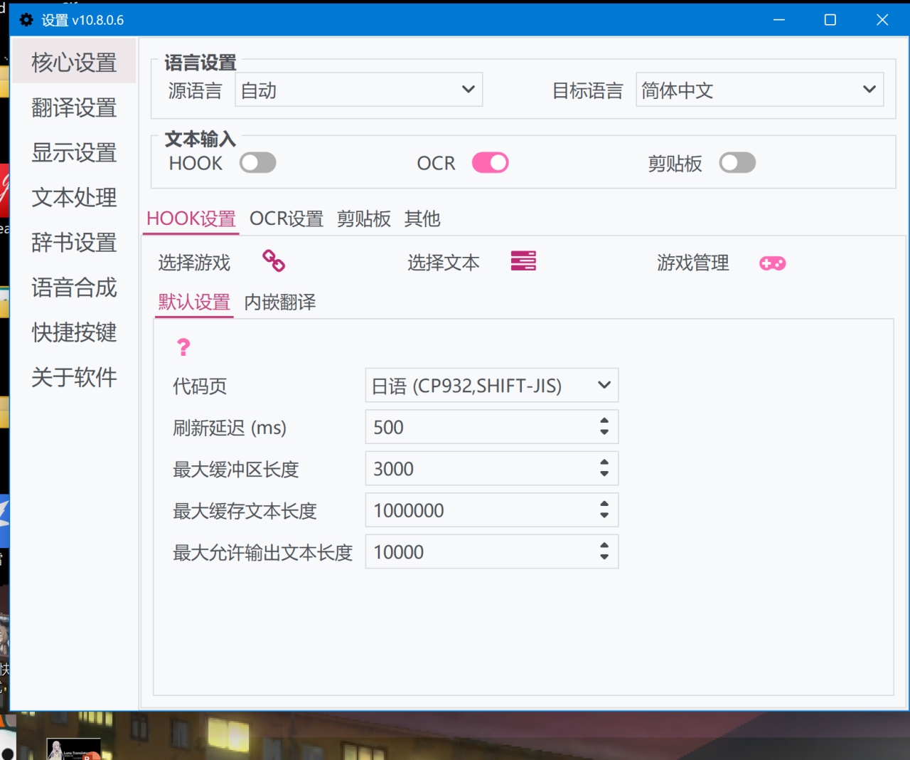 点击确认后,游戏将会被添加到软件中并注入游戏,然后会弹出选择文本窗口。