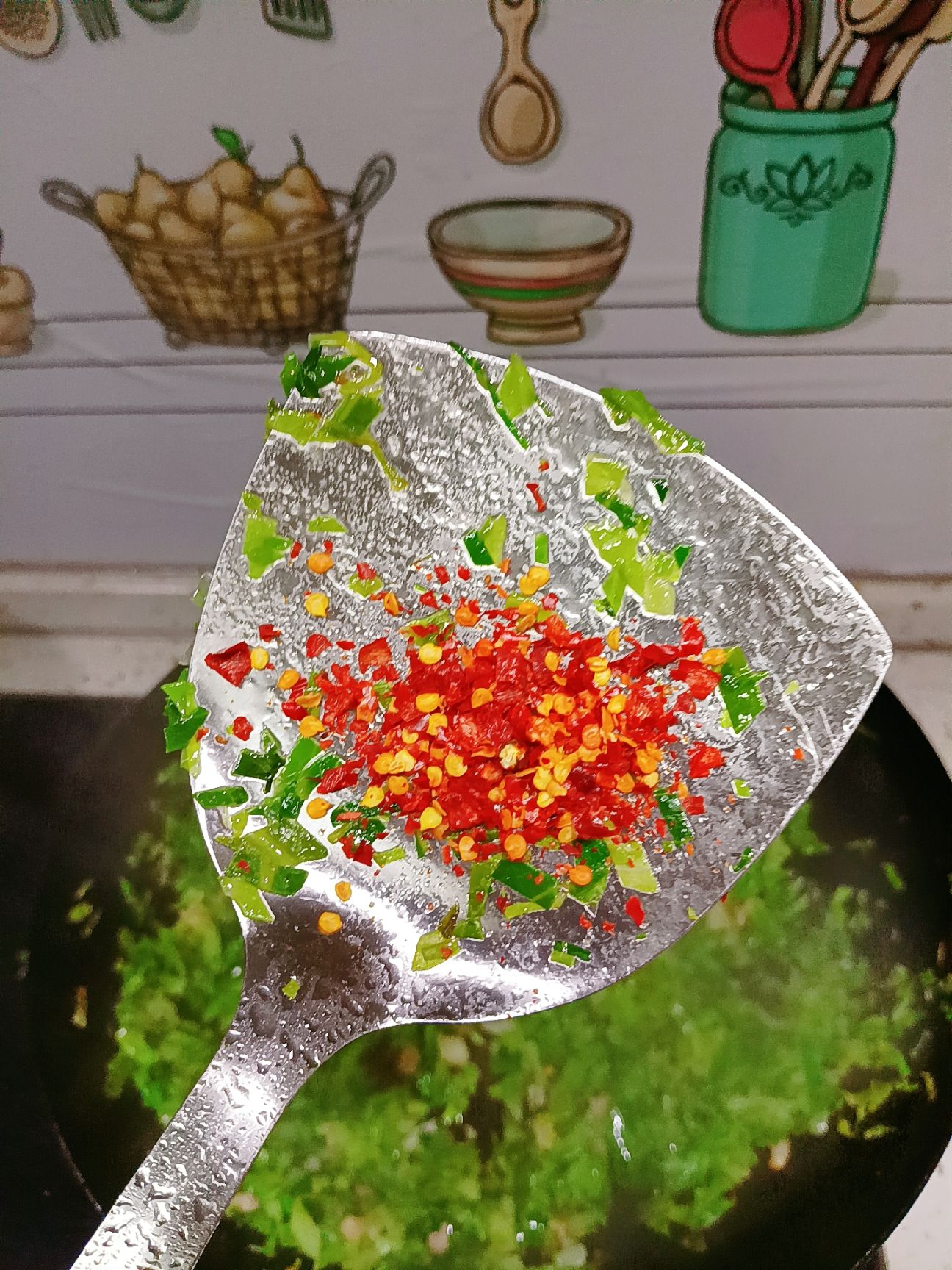 像這樣,中間剷出一個窩,沒有水或者只有一點點水就可以,盛出來備用。【大火或中火】