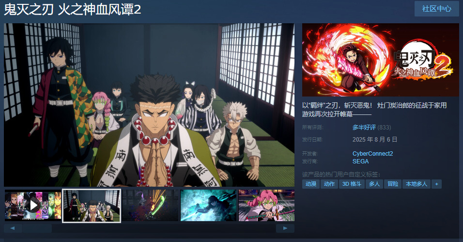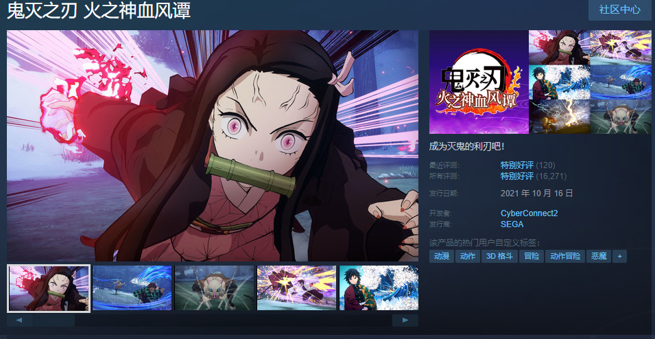 由CyberConnect2開發SEGA發行的《鬼滅之刃:火神血風譚》於2021年10月正式發售。
