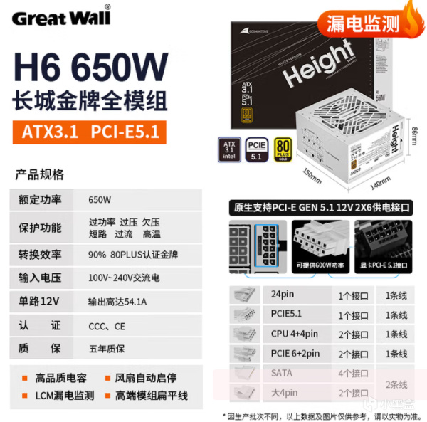 7.电源-长城H6 650W金牌 ATX3.1