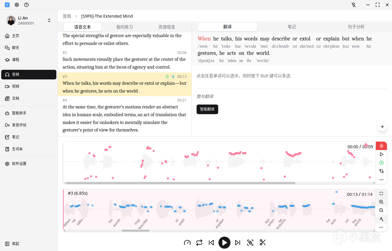 查看语法结构与发音反馈。