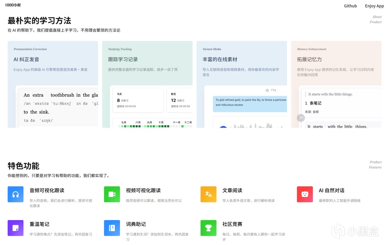 Enjoy 人人都能用英语定位为 AI 驱动的外语学习工具,旨在帮助用户通过智能助教提升英语听说能力。平台支持发音评估、句子结构分析与生词学习,并结合 TED 演讲等真实素材,让学习者在贴近实际的情境下进行训练。项目源代码已开源,相关主页与仓库均可访问,具体功能以官网更新为准。