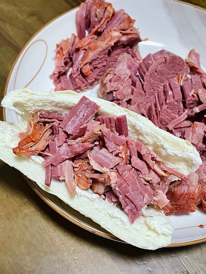在西安生活二十多年,喫了超級多好喫的以至於現在沒有感覺啥特別特別想喫,但每過一陣就會饞一口這臘牛肉,夾上剛烤出來熱熱乎乎的白吉饃,那叫一個地道~