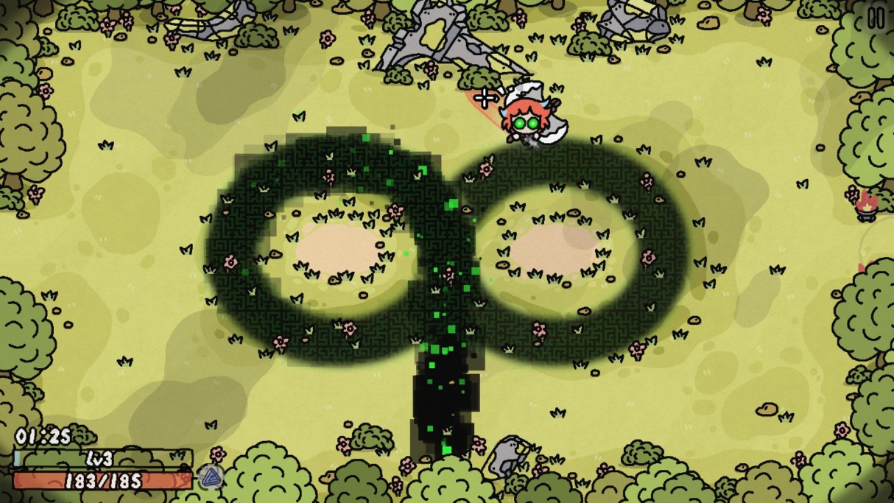 其實前面Rogue玩法有些說得不準確,這款遊戲的表層玩法其實也得和解密進行掛鉤,因爲武器的獲取也是藏在各種主線的分支道路上面,而遊戲裏面部分分叉路也會尋找到一種叫做小精靈的動物,而這些小精靈大概率也需要我們完成該地圖的一個解密,例如拔胡蘿蔔,搬石頭對形狀,甚至是還有龜兔賽跑如何在兔子不睡覺反而繞遠路刷微信步數的情況下讓烏龜獲得勝利等等,這些小精靈獲得之後會永久的提高玩家本身的屬性例如攻擊次數,傷害,移動速度等。