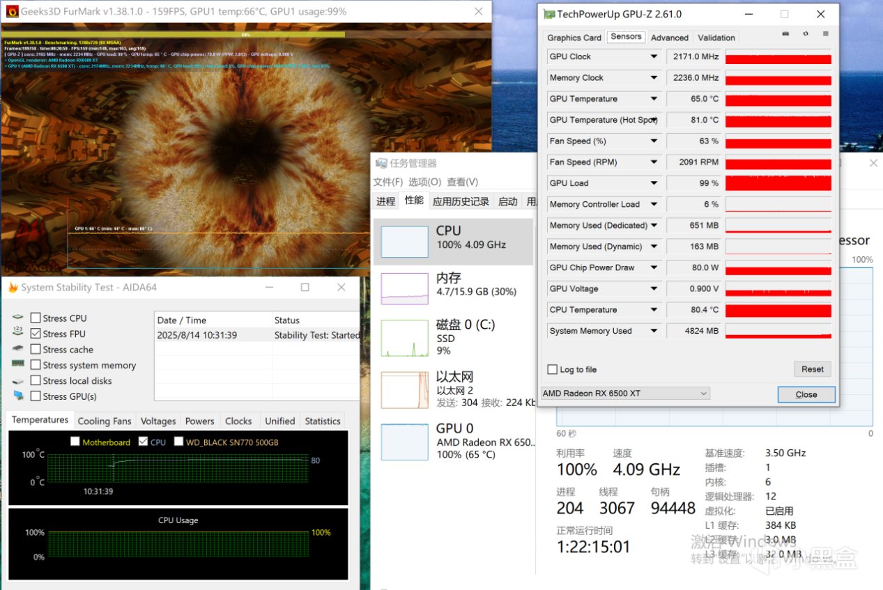 在室温30°的环境下,双烤CPU和显卡20分钟,CPU温度在80°,显卡温度在65°。