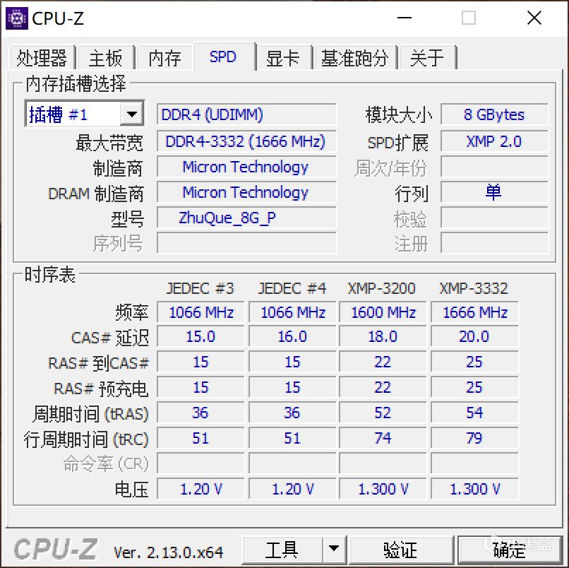 XMP2 3332Mhz C20-25-25-54 1.3v。
