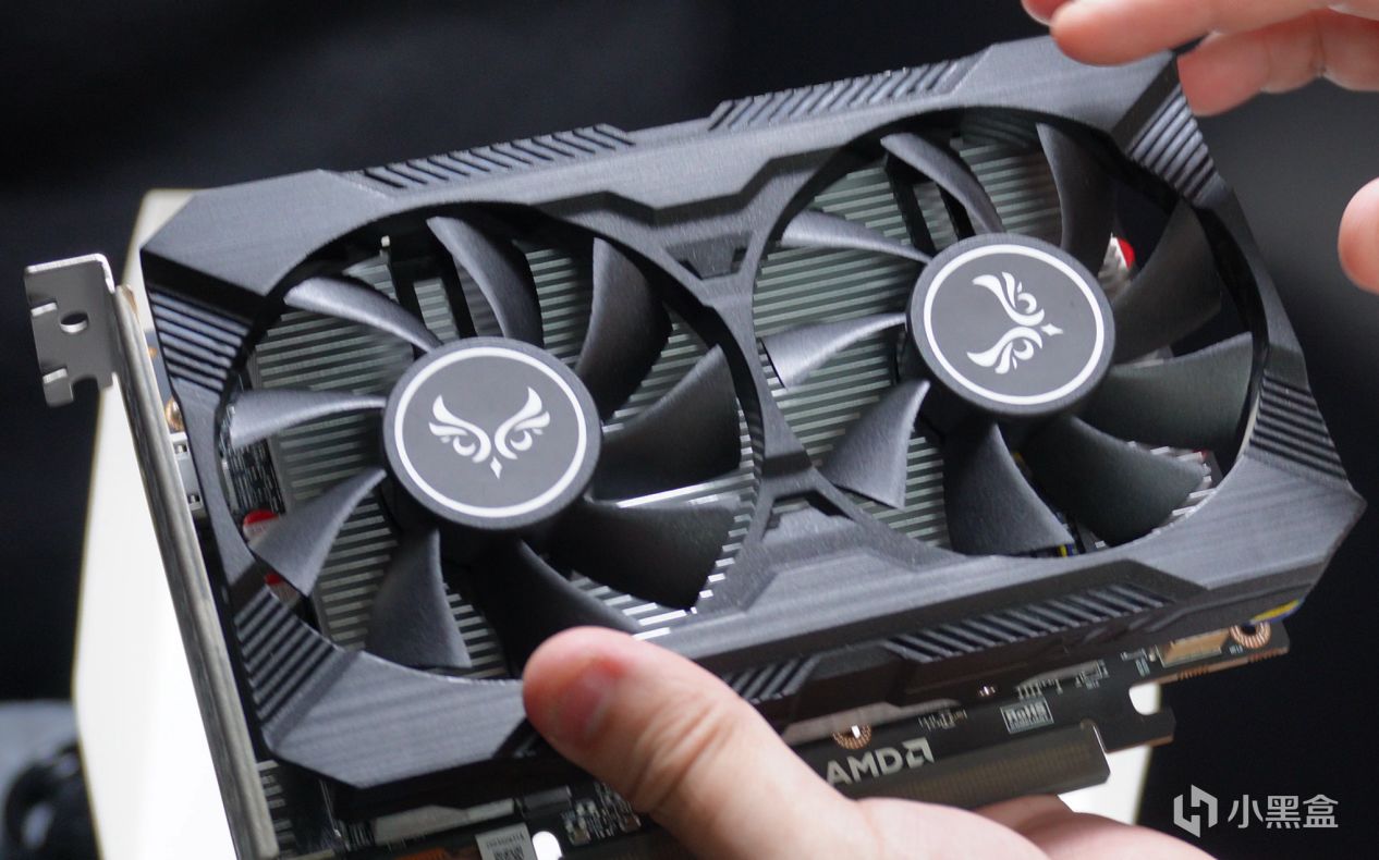 这是一个双风扇显卡,长171mm。支持PCIE4.0*4,缓存4GB,位宽64bit,显存带宽 143.9GB/s,显存频率2248MHz。