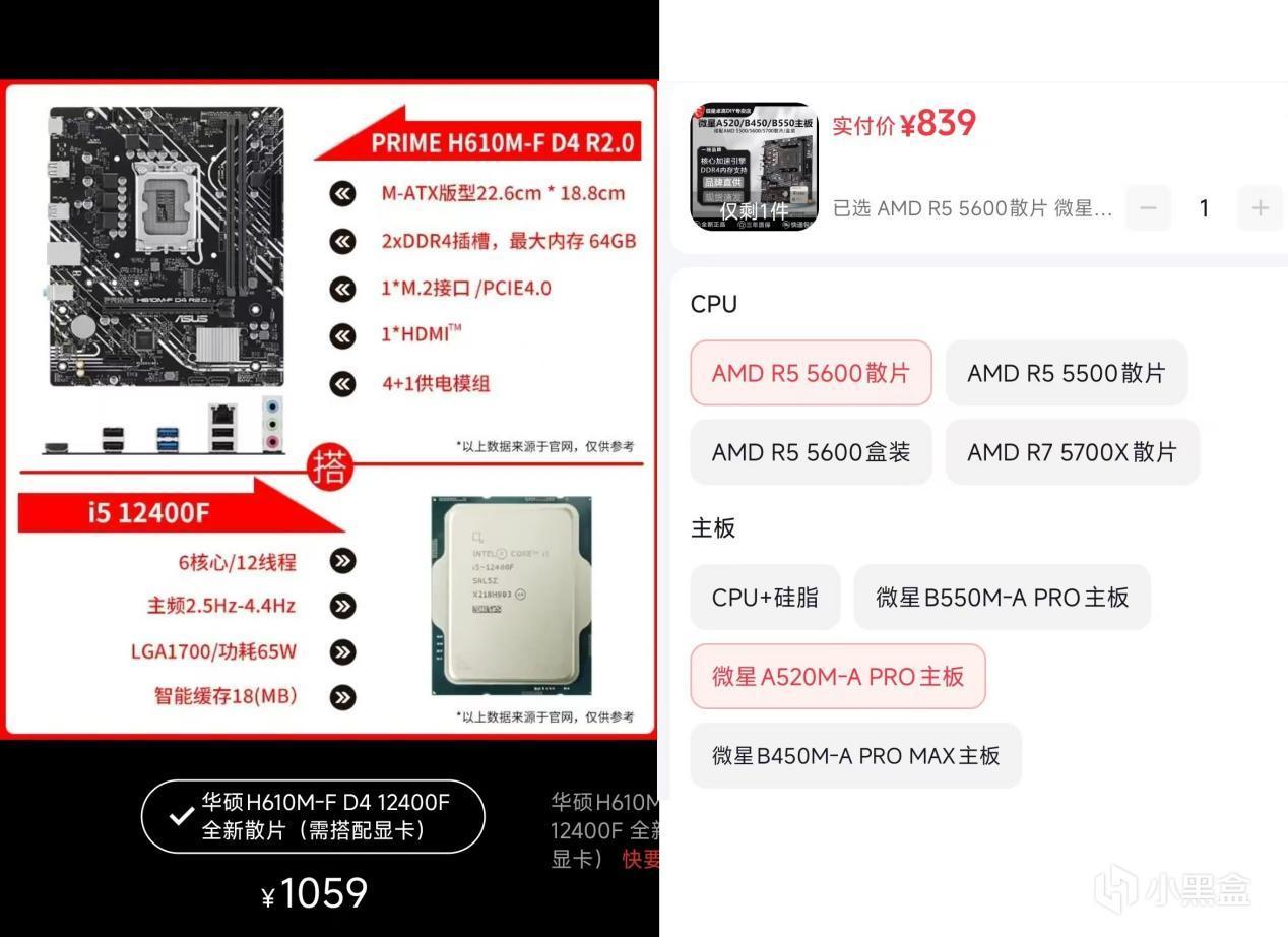 装一台电脑,不知道大家是先看显卡还是先看主板CPU。举个例子,给你10000元的预算,你如果想买5070TI,那么板U的预算就特别少了,估计只能上个7500F,咬咬牙能凑个9600X。你如果想买9800x3d,那么上个5070还是有余的。不过更多的是看用途了。2500元,Intel这边上个12400F + H610还可以,但!为什么不选择AMD呢?我直接一个5600+微星A520M-A PRO你又该怎么应对呢?
